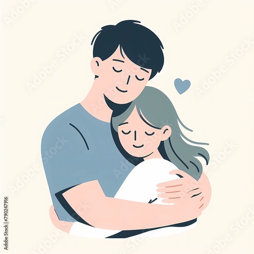 man and woman hugging, love, tenderness, family, illustration