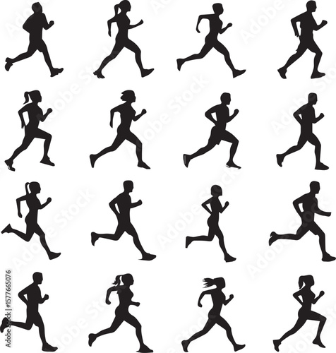 healthy lifestyle, running, fitness, sport, training, jogging, illustration, silhouette, people, vector, woman, runner, run, black, marathon, dance, person, player, team, exercise, figure, action, sprint, man, speed, adolescence, horizontal, outdoors