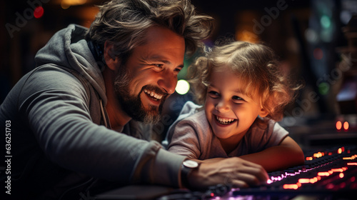sitting, fun, online, lifestyle, home, technology, together, leisure, human relationships, man, computer, young, entertainment, cyberspace, adult, girl, casual attire, laptop, family, father, fatherhood, purchase, relax, rest, digital