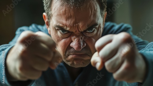 Man Clenching Fists with Intense Expression
