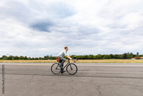 bicycle, fast, city, bike, commuting, male, sustainability, outdoors, environment, smiling, motion blur, copy space, people, white, speed, style, street, fun, sustainable, man, one person, caucasian, happiness, park, motion, leisure, happy, green, panning, lifestyle, cycling, young adult
