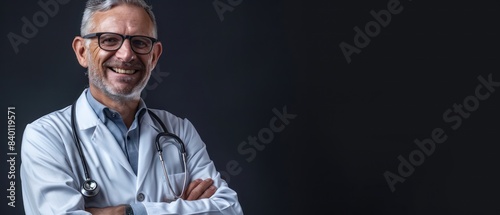 man doctor radiates warmth and competence against a serene black backdrop, exuding professionalism and empathy
