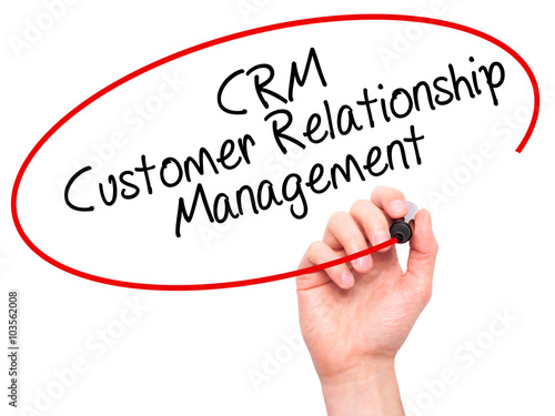 Man Hand writing CRM Customer Relationship Management with blac