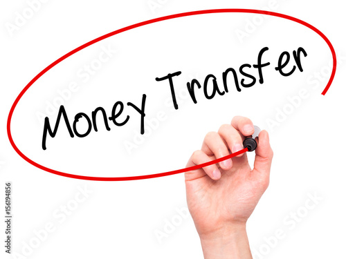 Man Hand writing Money Transfer with black marker on visual screen