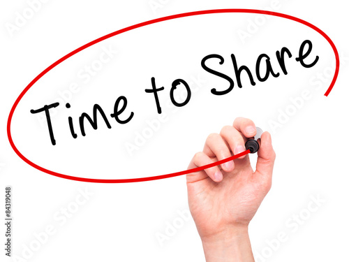 Man hand writing Time to Share on visual screen