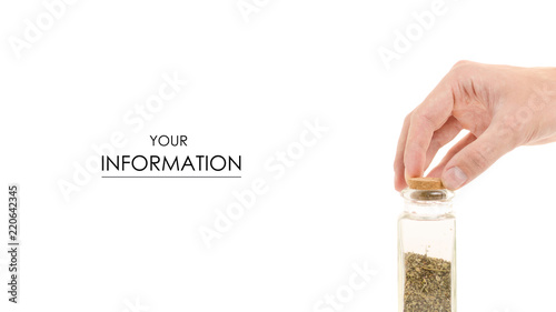 Man hands spices dry herbs on a white background isolation