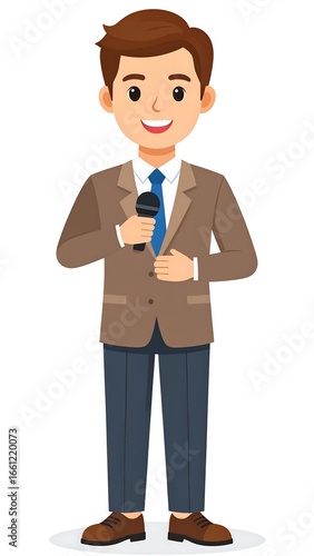 man, microphone, presenting, business, suit, formal, interview, news, speaker, professional, communication, presentation, broadcasting, announcer, newsman, media, speech, confident, illustration