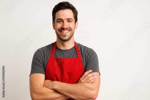 man, apron, smiling, happy, chef, cooking, kitchen, cook, cheerful, professional, culinary, joyful, cookery, meal, preparing, food, eatery, confident, talented, experienced, skilled, passionate, dedicated, expertise, culinary arts, hospitality