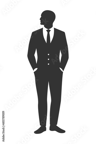 Man in suit graphic icon. Jacket, shirt and necktie sign isolated on white background. Men wardrobe symbol. Vector illustration