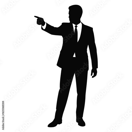silhouette, man, suit, pointing, direction, business, businessman, formal, wear, leader, guidance, choice, decision, strategy, executive, professional, career, success, achievement, goal, target, sharpened, leadership, finger, white, background, isolated, figure, outline, gesture