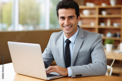 laptop, male, man, person, businessman, computer, business, office, professional, adult, technology, work, caucasian, photogenic, manager, portrait, sitting, happy, job, young, executive, workplace, using, typing, white, corporate, cyberspace, modern, smiling