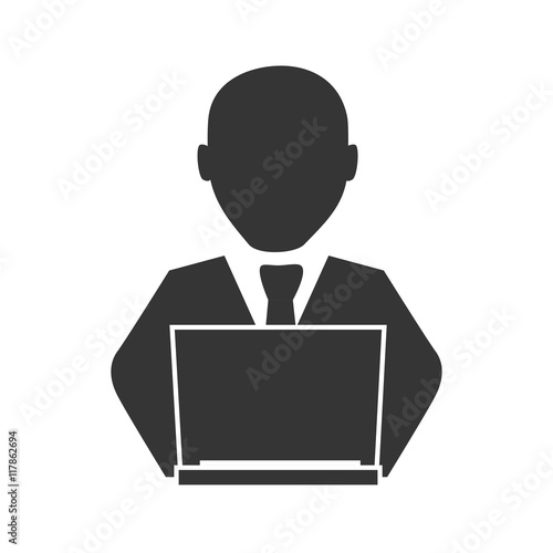 man laptop computer studying education technology bussines suit vector graphic isolated and flat illustration
