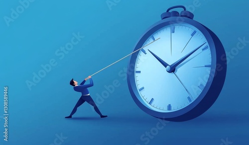 time management, deadline, alarmclock, clock, man, pulling, rope, time, urgency, illustration, vector, modern, business, businessman, monochrome, blue, challenge, effort, determination, achievement, success, work, schedule, strategy, planning, efficiency, management, leadership, responsibility, past, future, present, regulation, delay, concept, symbol, abstract, graphic, graphic design