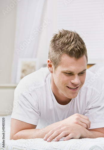 1, adult, bedchamber, blonde hair, brown eyes, calm, caucasian, confident, escape, exhausted, get-away, happiness, happy, holiday, indoor, inside, joy, laugh, laughing, laughter, lying down, male, man, mid-life, 1, peaceful, person, relaxation, relaxed, relaxing, serene, sleepy, successful, 30s, sleepy, toothy smile, 20s, vacation, vertical, white