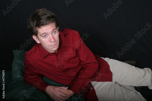 man, male, happy, smile, pleased, reclining, to rest, serious, calm, quiet, thoughtful, thinking, thinks, consider, meditate, reflect