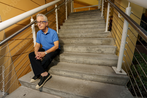 man, adult, mature, guy, senior, 70s, model, flash, photo, image, photogenic, grey hair, grey hair, pose, goggles, fisheye, fisheye, step, staircase, alone