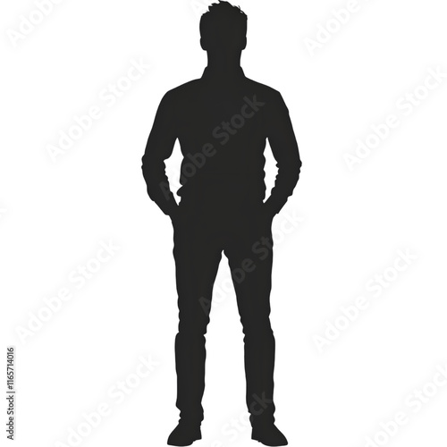 man, standing, silhouette, illustration, people, boy, expression, posing, photogenic, confident, joyful, serious, isolation, secure, satisfied, pleased, travel, business, businessman, shadow, outline, body, clip art