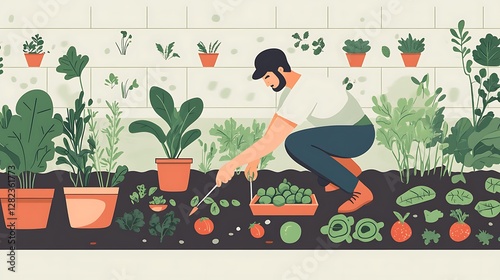 man, gardening, garden, vegetable, plant, herb, homegrown, produce, healthy, organic, growing, cultivation, farming, backyard, dirtied, sprout, leaf, root, tomatoes, carrot, lettuce, spinach, kale, rosemary, basil, thyme, oregano, parsley, mint, chives, dill, sage, broccoli, cabbage, radish, bean, pea, pepper, cucumber, squash, planting, harvesting, nurturing, nature, lifestyle