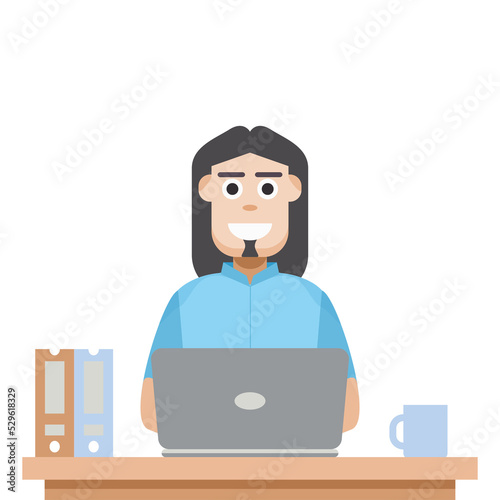 Man Using Laptop For Work From Home Wear Hoodie