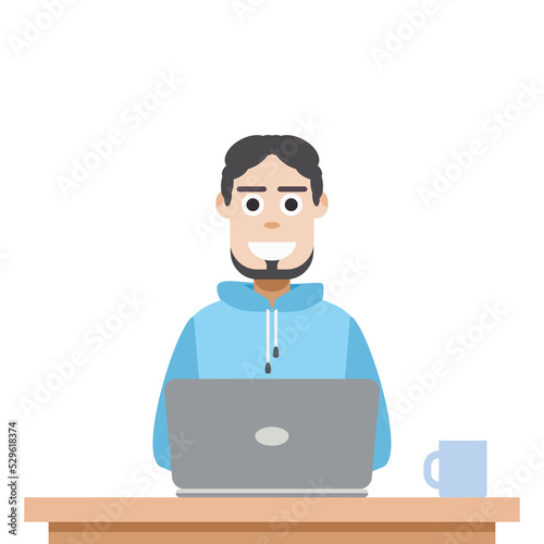 Man Using Laptop For Work From Home Wear Hoodie