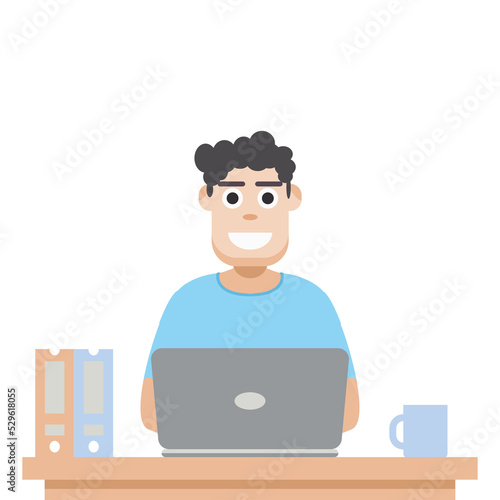 man, using, laptop, for, work, from, home, wear, t-shirt