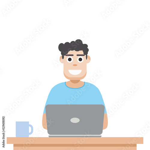 man, using, laptop, for, work, from, home, wear, t-shirt