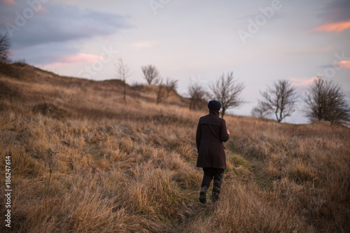 sunset, autumn, field, nature, season, man, rural, land, harvest, farming, farmer, people, walking, agriculture, agricultural, person, corn, peasant, landscape, crop, horizontal, sunlight, food, outside, farm, plant, yellow, happy, young, growth, dirtied, work, agronomist, row, agronomy, cultivate, 1, ground, looking, leaf, natural, examine, landscaped, cultivated, organic, inspect, fall, male, farmland