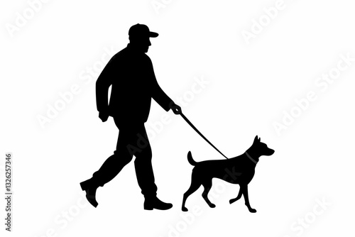 man walking with dog line art silhouette vector illustration