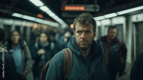 sorrowful, man, backpack, subway, sleepy, loneliness, isolation, reflective, mental health, introspection, thoughtful, solitude, subdued, introspective