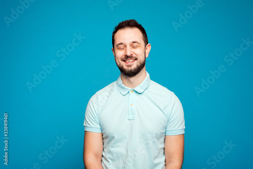 young, man, attractive, portrait, photogenic, happy, guy, casual attire, adult, male, studio, smile, white, face, background, person, modern, joy, model, 1, cheerful, standing, fashion, confident, laugh, expression, cool, positive, shirt, caucasian, smiling, coiffure, lifestyle, beard, looking, stylish, head, beautiful, trendy, look, european, blue, t-shirt, successful, success, copy, space, blog, advertising