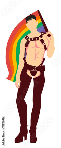 man with a flag of pride isolated in white