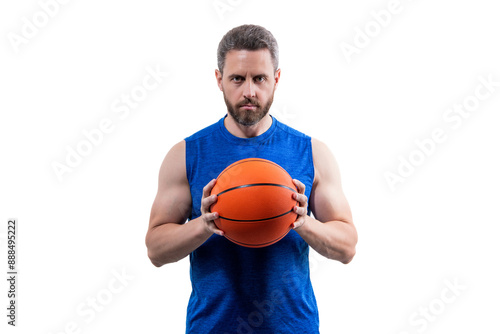 Man with basketball ball. Competitive edge. Professional basketball player training isolated on white. Muscular man has sport motivation. Sport and hobby. Basketball player man play professional