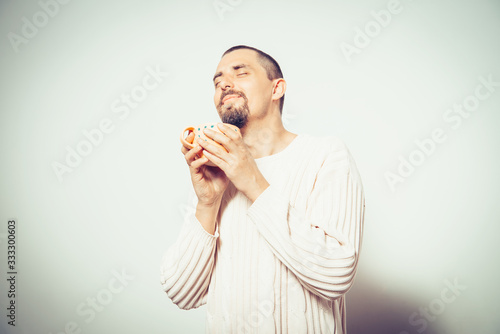 man, mug, tea, drink, calm, cup, smiley, guy, gorgeous, posing, portrait, honed, charming, attractive, expression, hot drink, restful, adult, relaxed, serene, people, male, smiling, positive, cute, lady, lifestyle, emotion, young, sharpened, holding, person, beauty, lovely, toothy, cheerful, beautiful, satisfied, comfort, pensive, happy, cocoa, aroma, favor, hot