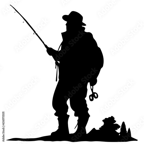 silhouette, fisherman, fishing, vector, rod, isolated, black, summer, fitness, sport, signs, person, hat, leisure, recreational, outdoors, solitude, adult, sportsman, reel, symbol, activity, pursuit, catching, 1, action, male