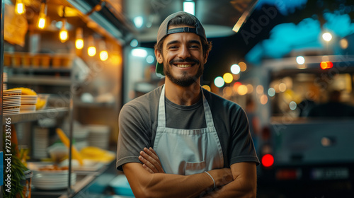 man working inside food truck on fast food,ai