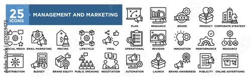 Management and Marketing icon collection set. Containing design strategy, business, analysis, marketing, management