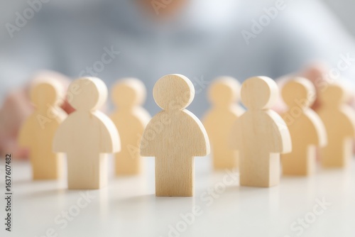 wooden, figure, group, people, surface, team, leader, human, resource, recruitment, business, management, leadership, candidate, career, employment, hiring, interview, job, person, search, select, skill, staff, talent, work, men at work, figure, choice, choosing, concept, resource, company, office, strategy, adviser, organisation, wood, table, white, hand, blur
