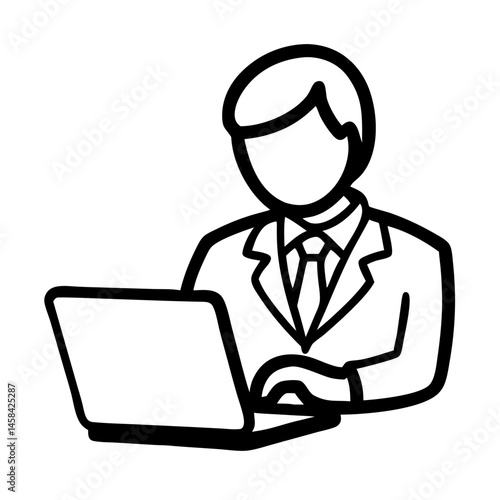 businessman, laptop, working, minimalist, line art, technology, office, professional, focused, digital, concept, communication, corporate, modern, monochrome, illustration, occupation, productivity, gesture, task, analytical, intelligent, design, work, workplace, formal, attire, creative, idea, remote, connection, online, efficiency, business, strategy, networking, leader, client, project, adult, male, white, modernity, simplicity, job, career, inspiration