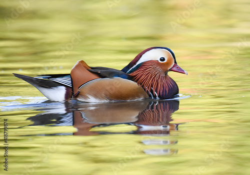 Mandarin duck swimming on green lake
