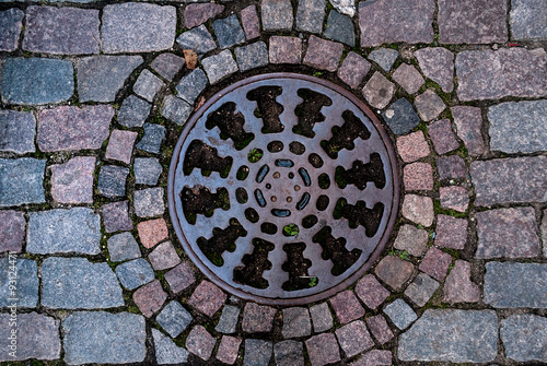 avenue, brick, circle, city, communication, cover, design, detail, drain, drainage, environment, flow, ground, hatch, heavy, hole, infrastructure, inspection, maintenance, manhole, metal, old, ordinary, rain, road, roadside, round, sanitation, sanity, sewage, sewer, shine, sidewalk, steel, street, style, town, transport, underground, urban, utility, waste, water, way, wet