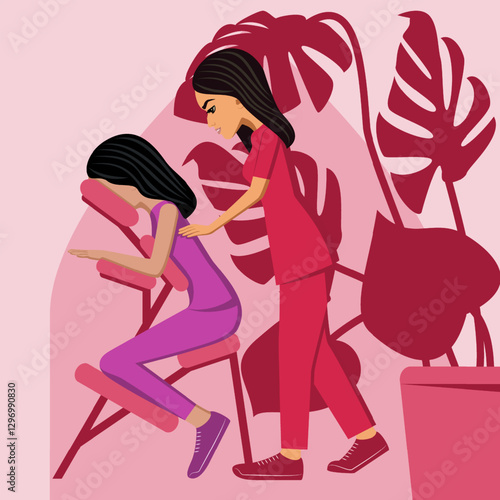 massage, massaging, manual, massage therapist, physical therapist, healer, ethnicity, spa, salon, cabinet, body part, body, skin, skincare, bodycare, reiki, alternative medicine, therapy, treatment, health spa, care, health care, physical therapy, beauty, relaxation, person, woman, female, illustration, object, isolated, vector, background, cartoon, flat, style, design, art, poster
