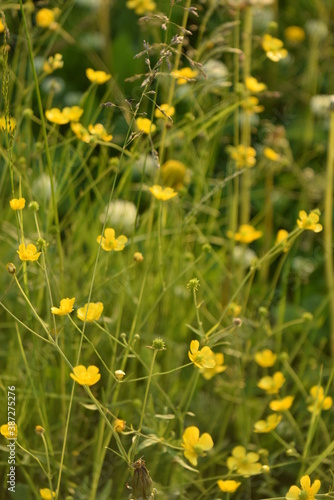 flower, nature, yellow, field, spring, grass, meadow, flower, blowball, green, summer, plant, blossom, flora, beauty, garden, season, blooming, beautiful, bloom, bright, buttercup, outdoors, colours, sky