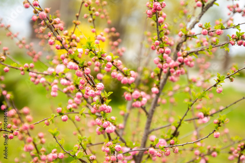 many blooming pink roses on a bush close-up in a spring garden. large bushes of pink roses blooming in a city park. care of garden rose bushes