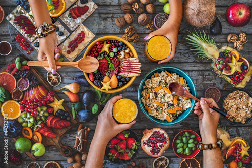 fruit, eating, salad, hand, orange juice, drinking, variation, berry, colourful, wood background, summer, bowl, antioxidant, fruit, fig, cranberry, half, grapefruit, mulberry, pomegranate, apricot, tropical, citrous, pineapple, strawberry, kiwi, diet, raw, vegan, blueberry, blackberry, dieting, banana, vitamin, mix, organic, food, healthy, oat, starfruit, tray, people, holding, giving