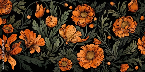 blossom, art, retro, leaf, garden, floral, pattern, flower, background, romantic, bunch, elegant, herb, style, creative, herbal, vignetting, botany, feminine, flora, artistic, elegance, foliage, bloom, botanical, vintage, plant, blooming, print, beautiful, artwork, decorative, colourful, design, nature, texture, ornament, abstract, orange, bouquet, watercolor, decoration, ai, illustration, aesthetic