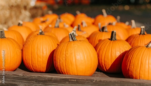 pumpkin, orange, autumn, fall, gourd, harvest, vegetable, produce, market, wooden, display, row, sunlight, seasonal, natural, farm, fresh, ripe, agriculture, nature, food, healthy, abundant, plentiful, beautiful, colourful, bright, creative, modern, elegant, stylish, professional, decorative, vibrant, stunning, amazing, marvellously, fantastic, gorgeous, lovely, charming, attractive