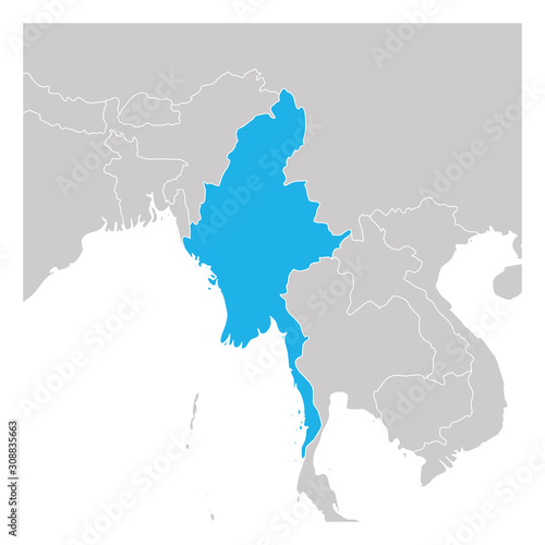 map, vector, country, cartography, geography, graphic, illustration, isolated, travel, earth, atlas, background, international, neighboring, region, border, contour, flat, geographical, location, shape, area, boundary, area, earth, information, simple, simplified, neighboring, neighboring, neighboring, border, sharpened, focused, detail, silhouette, highlight, highlighted, state, sea, white, blue, blank, asia, asian, burma, burma, burmese
