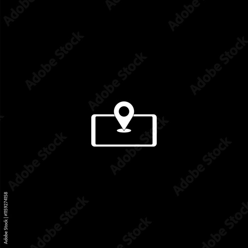 Map pin on phone screen icon isolated on dark background