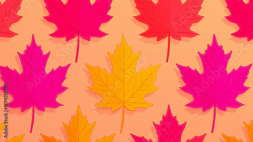 Maple and Oak Leaves Pattern in Red Orange Yellow and Brown for Autumn Life Inspiration and Business Design