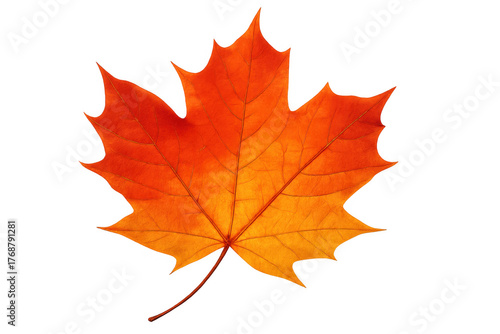 Maple leaf displaying vibrant gradient colors from red to orange, signifying autumn season on transparent background